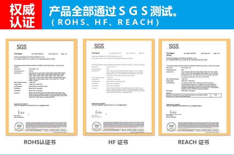 產(chǎn)品符合ROHS,通過SVHC環(huán)保測試要求